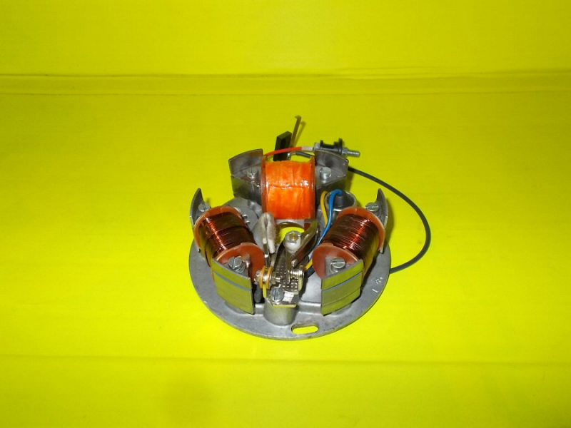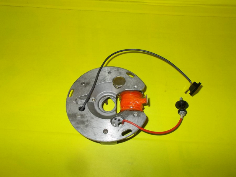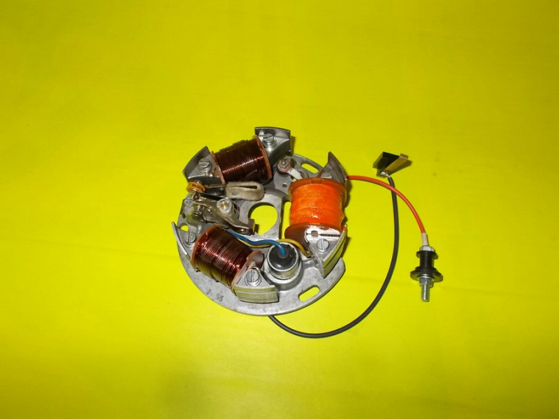 Zapalování je poskládané z nových dílů, stará je pouze zapalovací deska. Nové všechny tři cívky, kladívko, kondenzátor, zkratovač, průchodka elektroinstalace.