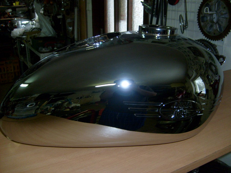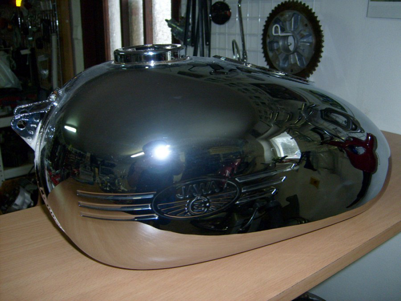 Nádrž je nově chromovaná, nejedná se o novou nádrž. Chromovánu u pana Vepřeka. Pokud si dodáte svoji nádrž odečteme vám až 1500 korun.